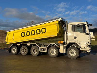 Für die Kibag Management AG durften wir eine Eschler GRANIT Rückwärtskippmulde realisieren, aufgebaut auf einem Mercedes-Benz Arocs 10×4. Die Mulde verfügt über ein Volumen von rund 18.5 m³ und ist vollumfänglich aus Hardox 450 gefertigt. Das Aufbaugewicht beträgt ca. 3’800 kg.